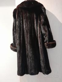 Pelliccia di visone scuro taglia 42, lunghezza dalla spalla cm.103, foderata pellicceria Antonello, Castelfranco Veneto