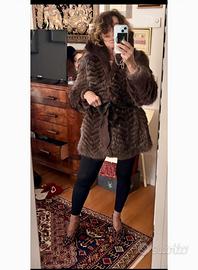 Pregiata pelliccia in vera volpe argentata, caratterizzata da una raffinata tonalità calda (bruno/argento). Il capo si distingue x la lavorazione a spina di pesce (Chevron), che dona movimento e sfila la figura. Taglio 3/4 moderno e giovane. Il pelo è lucido, folto e morbidissimo, la fodera interna, integra e pulita. Adatta a chi è giovane e a chi si sente giovane Taglia 40/42. Fare attenzione alle misure di seguito : spalle 35, Ascelle 45, lunga 76 Ozzano € 230