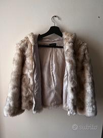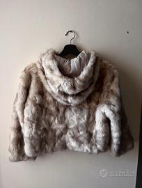 cappottino cropped con cappuccio e cerniera in simil-pelliccia molto morbida