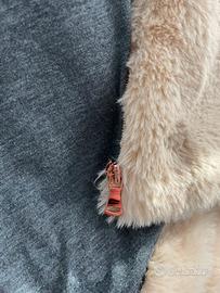 Giubbotto foderato pelliccia con cappuccio, colore beige chiaro x ragazza 11-12 anni.