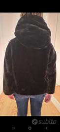 Pellicciotto con cappuccio in ecopelliccia nero