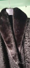 Pellicia Persiano Nero con Collo e Polsi in Visone