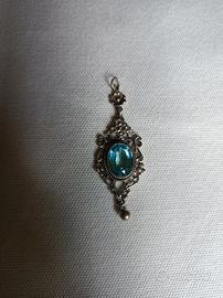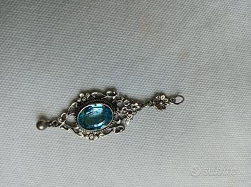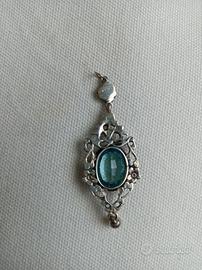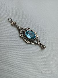 lavorato delicatamente a mano con pietra vera zircone azzurro in argento 800 antico