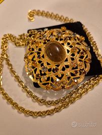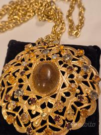 Bellissima collana, catena lunga con pendente tipo filigrana con pietra e cristalli anni '50 proveniente da alta sartoria