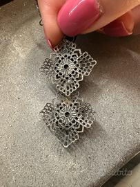 Pendente in ferro battuto con strass rosa e pietre dure, lunghezza 5 cm.