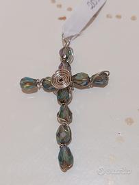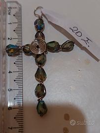 croce pendente in gocce di vetro sfacettato e acciaio inox ,creazioni artigiano