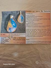 Pendente con ambra blu naturale di gr. 4,70 e oro 750 gr 0,70