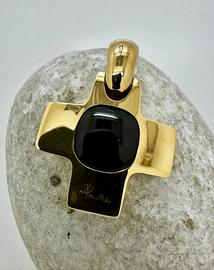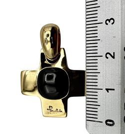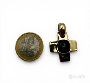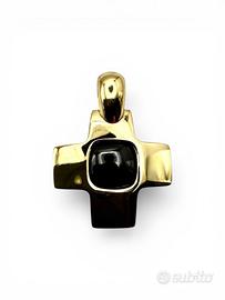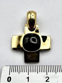 Pendente croce Pomellato in oro giallo 750/1000 peso 10,10 con cabochon di granato al centro misura 3 x 2,5 cm possibilità di finanziamento spedizione tracciata e assicurata