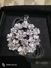 COLLANA PENDENTE GIOVANNI RASPINI QUADRIFOGLI REALIZZATA IN ARGENTO NUOVA !!!