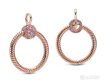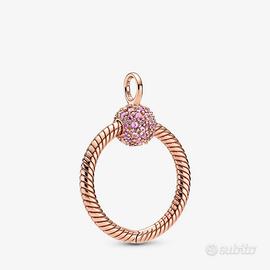 Scegli un nuovo modo per indossare i tuoi charm con il pendente Pandora O medio con pavé Pandora Moments. Rifinito a mano e realizzato in Pandora Rose (la nostra esclusiva lega metallica con placcatura in Oro rosa 14K), il gioiello si ispira al monogramma della O coronata Pandora e ai bracciali con maglia snake Pandora Moments. Completato da una chiusura originale a sfera decorata da zaffiri rosa sintetici e da un pulsante a forma di cuore sul retro, il gioiello è perfetto da inserire su una collana con maglia spessa e può tenere fino a 5 charm o pendenti.