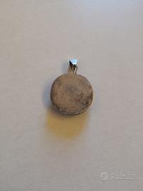 Vendo pendente rotonda con gancio e retro in argento e pietra Diaspro con venature bianche, diametro cm. 2.5, spessore cm. 0.5, anni '80, non ha la confezione, mai usata ed in ottime condizioni. Si prega di contattare Graziano 340-4110406 dalle 10 alle 19. SI SPEDISCE SOLO DOPO EVENTUALE BONIFICO + SPESE DI SPEDIZIONE, oppure la merce va ritirata personalmente e pagata in contanti, a Vago di Lavagno (VR) o, previo accordo nelle immediate vicinanze, max 10 Km.