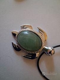 Pendente in laccetto nero attacco aragosta stupendo incastonato pietra Avventurina verde molto bello. Misura circa 1 cm e mezzo, da non perdere in regalo piccola pietra di Giada verde portafortuna al gioco e lotterie questo pendente vi porterà molto Fortuna oltre ad essere elegante e moderno si spedisce in confezione regalo . Nuovo mai usato, volendo max 5 pezzi con 5 pietre Giada portafortuna sconto sul prezzo finale acquistando tutte e 5 i pezzi invece 40 euro solo 30 euro singolo 8 euro