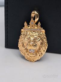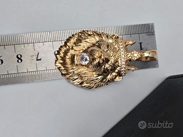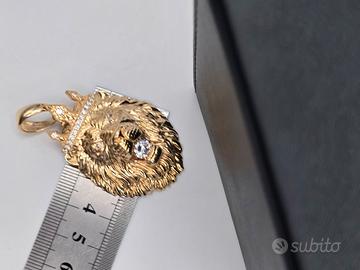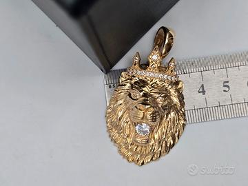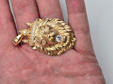 a testa di leone a rilievo in fusione piena con brillante zirconi centrale da 1.5 ct e piccoli diamanti naturali sulla criniera