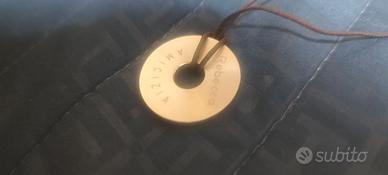 Pendente in acciaio, ebano lavorato ed oro 750/00. Significato: Amicizia