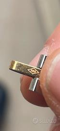 pendente a croce con un dettaglio sferico in oro giallo al centro.
