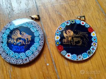 Bellissimi pendenti in vetro di Murano (Murrina) raffiguranti il Leone della Serenissima, autentico simbolo veneziano.