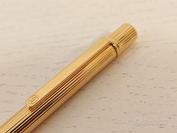 Penna a sfera MUST DE CARTIER placcata oro SERIE 053921 inchiostro blu FUNZIONANTE No scatola