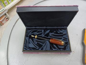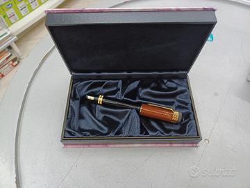 La penna è realizzata in resina con le tipiche colorazioni dell’ambra, un materiale che al tempo di Schiller simboleggiava i cambiamenti in corso nella società.
