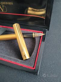 Penna Stilografica VALENTINO Vintage - Dorata - Ottime Condizioni Descrizione dell'oggetto Splendida penna stilografica Valentino originale, un pezzo vintage elegante e raffinato, perfetto per collezionisti o per un regalo di classe. Marca: Valentino Modello: Stilografica con lavorazione godronata (linee verticali) Colore: Oro / Finitura dorata Condizioni: Ottime condizioni estetiche e funzionali. Presenta minimi segni del tempo coerenti con l'età (vintage). Dettagli: Logo Valentino inciso sul cappuccio e sul pennino. Accessori: Inclusa custodia originale (come da foto).