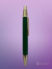 Vendo penna a sfera colore verde con dettagli oro, clip dorata ROLEX Stile elegante, ideale da ufficio o come oggetto da collezione/merch.