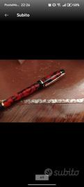 Splendida penna roller/stilo Waterman modello Phileas nella raffinata colorazione rosso marmorizzato (Red Marble) con finiture dorate. Un pezzo dal design classico ispirato all'Art Déco, perfetto sia per collezionisti che per chi cerca uno strumento di scrittura elegante e di alta qualità. La penna è un mix perfetto di stile e robustezza. Dettagli dell'oggetto: Marca: Waterman Paris (originale) Modello: Phileas Colore: Rosso marmorizzato e nero con clip e dettagli dorati. Condizioni: Ottime, come si vede dalle foto. Corredo: Completa di scatola originale blu Waterman e libretto di garanzia/istruzioni. La penna è stata conservata con cura, il meccanismo è perfetto e non presenta segni di usura evidenti. Un'ottima idea regalo o un pezzo da aggiungere alla propria scrivania.