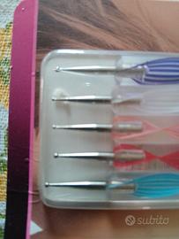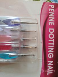 Vendo un kit di 5 penne per nail art, perfette per decorare le unghie. Sono strumenti nuovi, mai usati, e presentano colori vivaci e allegri.