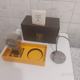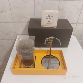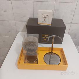 Pennello da barba Acqua di Parma. Tutta la descrizione la troverete sia sul foglio illustrativo presente nelle foto allegate sia in rete. La confezione fa parte della collezione barbiere di Acqua di Parma. Il pennello è in puro tasso di prima qualità arricchito da materiali pregiati come come il manico in legno wengè e ottone brunito. Il prezzo della confezione lo trovate in rete e si aggira intorno ai 300€ ma non si trova sotto i 290. Vendo a 160 €. Naturalmente tutto originale e nuovo nella propria confezione.