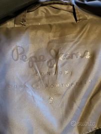 Pepe Jeans London Piumino grigio con cappuccio, tg S. Indossato un paio di volte, ottime condizioni. Misure: spalla 41cm circa/ lunghezza 60cm circa e busto 42cm circa.