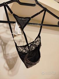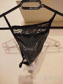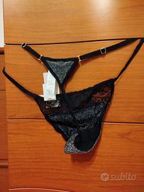 perizoma nero in pizzo e glitter argento.Taglia unica.Nuovo con cartellino