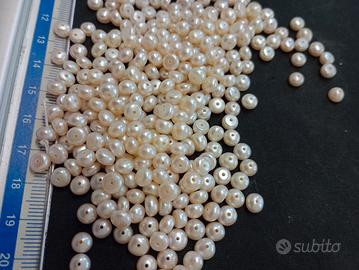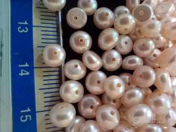 Vendo lotto di perle coltivate in acqua dolce forma bottone, colore bianco–avorio con riflessi rosati.