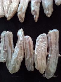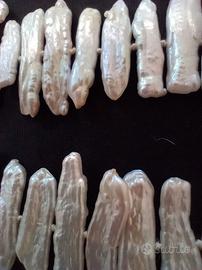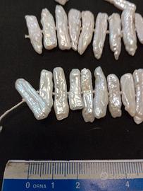 Vendo perle Biwa in acqua dolce, forma stick/barocca, colore bianco con bei riflessi iridescenti.