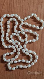Collana di perle di fiume a forma irregolare barocca, diametro medio 4/5mm, lunghezza totale circa 112cm. Valuto offerte ragionevoli.