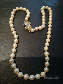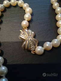Girocollo 23 cm con fermaglio argento 800 dorato perle infilata con nodi 40 euro.