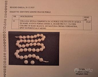 Salve , privato vende filo/collana Perle di mare (senza aggancio fermaglio ) descrizione e composizione come da certificato analisi di gemmologia in foto.