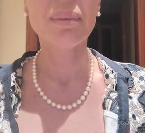 collana di perle vere coltivate lunghezza 45cm gancio oro 18ct perle 7,2mm come nuova compreso orecchini