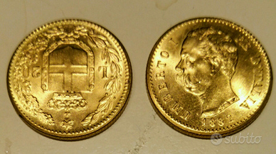 Riproduzione Marenghi " Umberto 1° L. 20 - 1882, dorati.