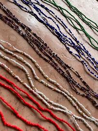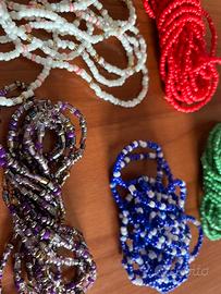Vendo perline nuove perfette. Sono collane molto lunghe che si possono indossare a doppio, oppure come bracciali o cavigliere. Eventualmente di possono usare anche per ricoclo creativo.