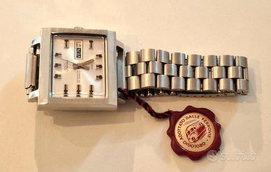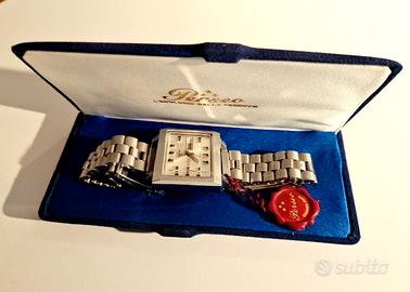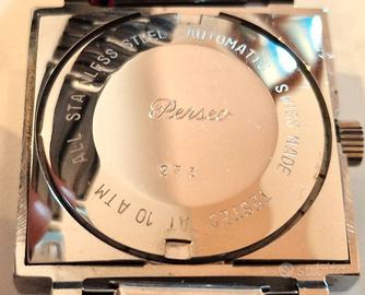 Orologio Perseo automatico con movimento a 25 rubini, cassa rettangolare in acciaio inossidabile. Orologio nuovo, mai usato in confezione originale, funzionante, rimanenza di magazzino del negozio di orologiaio di mio padre. Dimensione cassa 33 x 30 mm NB. PREZZO NON TRATTABILE