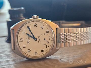 Perseo carica manuale orologio della mia collezione privata perfettamente funzionante con movimento a carica manuale calibro Unitas ramato 6325 Cassa in acciaio da 36 mm esclusa corona Vetro plexiglass quadrante smaltato bianco panna Bracciale in acciaio vintage generico ma di ottima qualità e perfettamente abbinato allo stile dell'orologio