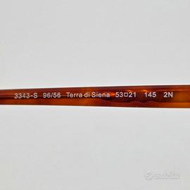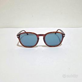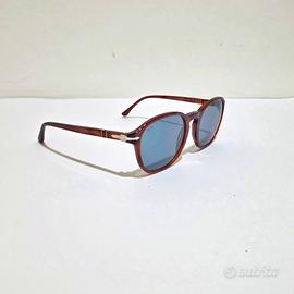Persol 3343 in colorazione Terra di Siena e lenti azzurre. Occhiali nuovi, con scatola, panno per pulizia, custodia e tagliandini casa madre, tutto integro, mai usato.