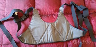 Indicato per pazienti costretti alla carrozzina o alla poltrona per evitare la caduta o lo scivolamento del busto in avanti. Grazie alle bretelle regolabili posteriormente con fibbie in plastica scorrevoli, il dispositivo assicura una vestibilità personalizzata e confortevole. È un ausilio ortopedico destinato a migliorare la stabilità posturale e il comfort in posizione seduta, contribuendo al benessere quotidiano dell’utente. Bretelle regolabili posteriormente con fibbie in plastica scorrevoli. Cintura sottoascellare regolabile posteriormente con fibbia in plastica a tridente. Realizzato in MTP (a base di poliammide o poliestere e poliuretano)