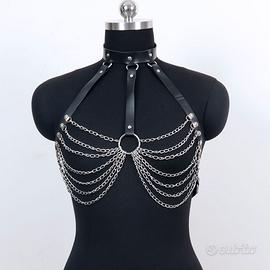 Harness in ecopelle nera con dettagli metallici, perfetto per valorizzare il tuo stile. I cinturini regolabili garantiscono una vestibilità comoda e sicura per diverse corporature.