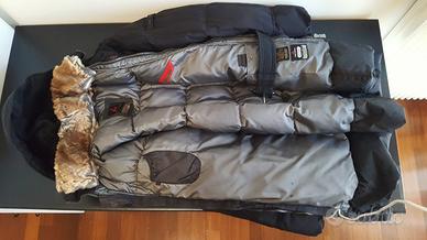 PEUTEREY HMS GUARDIAN NERO tg S o 46 cod 5406U402M0 in buone condizioni, tenuto bene. Il tessuto è senza strappi sia esterni che interni ma il piumino è stato portato e quindi non è perfetto. Il prezzo comunque è adeguato allo stato. Capo originale acquistato in negozio da rivenditore ufficiale e portato poco. Prezzo di listino 490e, ora il modello 2022 costa più di 900e. Vendo per mancato utilizzo e perchè per me è un po' grande, era più giusta una tg xs. Parka trapuntato invernale per uomo con imbottitura in vera piuma d'oca molto pesante, modello lungo ma sopra al ginocchio, chiusura centrale a bottoni e zip, quattro tasche frontali quelle alte sono oblique e con pile scaldamani quelle basse con patta e zip, colletto rivestito in pelliccia di lapin staccabile, cintura in vita regolabile, cappuccio rivestito di panno caldo rimovibile e regolabile con coulisse, diverse tasche interne una con cerniera una porta cellulare e altre sul fondo. Dettaglio del logo sulla manica, interno giacca, placca con numero modello sul colletto. Piumino ideale per temperature fredde, da -20° a +10 molto caldo ma leggero e soffice. Ho staccato etichetta della taglia sulla schiena perché aveva preso una piega sbagliata e mi faceva i pallini ai maglioni di lana. La taglia è riportata sui cartelli di acquisto delle foto Riporto misure: larghezza spalle 49, larghezza torace sotto ascelle 57, larghezza vita 53, larghezza vita a cintura chiusa su ultimo passante 46, larghezza fondo 58, lunghezza maniche 62, lunghezza tra collo e fondo 86. Segnalo che ho sostituito anellino del cursore della cerniera centrale perché rotto con altro anello, si è staccata la lettera U della scritta Peuterey su fascetta del braccio sinistro. Contattatemi per info o foto dettagliate. Posso spedire o consegnare a mano zona Conegliano (Tv) Pagamento da concordare