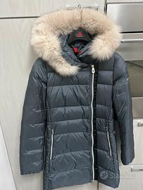 Peuterey piumino donna nuovo con etichetta, taglia 40, colore grigio piombo con tasche e pelliccia volpe dellaGroenlandia sul collo. Costo euro 669