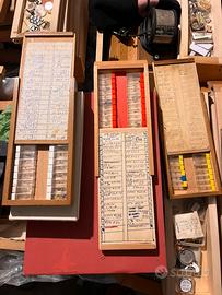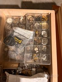 Vastissima serie di pezzi di ricambio originali e non , per orologi a carica manuale e automatico. Come da foto allegate i componenti riguardano orologi di prima invenzione, ossia a corda e automatico. Dai marchi svizzeri, tedeschi, italiani ecc ecc . Vendo pezzi singoli per collezionisti e per la poca reperibilità del pezzo stesso. Tutto quello che è riportato in foto è frutto di arte tramandata da nonno/ padre e figlio. Dí provenienza documentata.