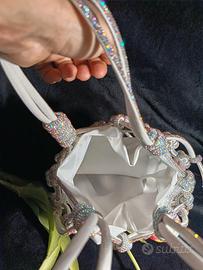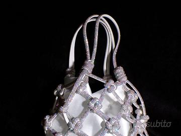 Borsa gioiello artigianale realizzata a mano. Struttura intrecciata impreziosita con luminosi cristalli perfetta per cerimonie, eventi importanti o serate eleganti. Unico pezzo.