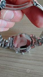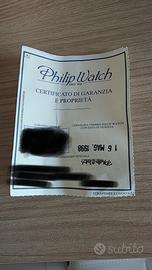 Vendo splendido Philip Watch AQ 2000 cronografo originale, acquistato il 16/05/1998, completo di certificato di garanzia e proprietà originale. Orologio Swiss Made dal design sportivo ed elegante, con quadrante nero e dettagli rossi/blu, molto caratteristico e sempre più difficile da trovare in queste condizioni. Caratteristiche : - Cronografo - Datario - Impermeabile 100 metri (10 ATM) - Movimento al quarzo svizzero - Cassa in acciaio inox - Bracciale originale marchiato Philip Watch - Chiusura con logo Condizioni ottime con normali segni di utilizzo sul bracciale, un corredo certificato originale Philip Watch (1998) e scatola vintage Philip Watch (come da foto). Orologio vintage anni ’90, ideale per appassionati e collezionisti. Molto bello anche da indossare quotidianamente.