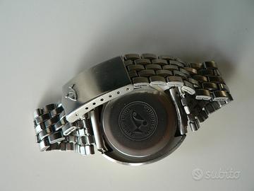 CASSA: big size monoblocco in acciaio, solida e pesante, di forma ovoidale e diametro circa 32 mm esclusa corona, anse da 20 mm, finitura lucida, con inserto lunetta in acciaio lucido, in buone condizioni.