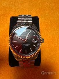 Orologio automatico , indossato pochissimo, acquistato a settembre 2023 su amazon a euro 680,00. Scatola e documenti purtroppo smarriti per errore, cassa 41mm e quadrante nero, bracciale jubile’, impermeabile fino a 100 mt . Corona a vite, movimento sellita sw 200-1 qualsiasi prova di originalità. No a preditempo e proposte senza alcun senso!
