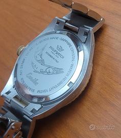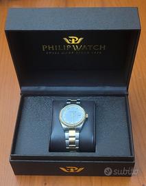 Orologio Philip Watch Caribe al quarzo. Diametro 39 mm; bicolore; WR 1O ATM; lente sul datario a ore 3. Usato pochissimo, tenuto molto bene. Con cartellini e scatola originale.